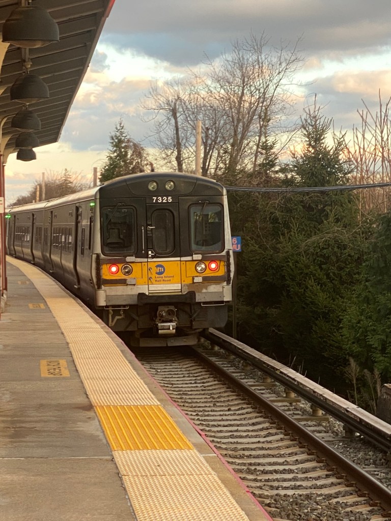 Port Washington-bound train pulls out of Auburndale LIRR station.