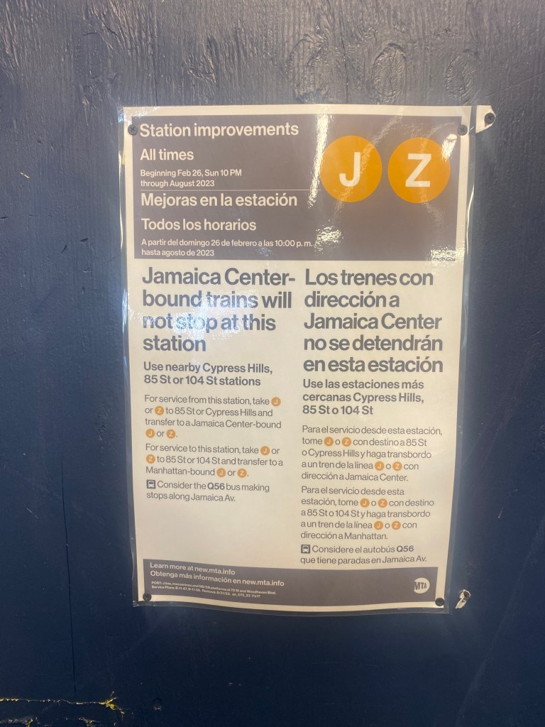 At the community board meeting where the platform renovations were announced, a board member raised concerns about where the MTA would store equipment given the frequent illegal parking and congestion issues along Jamaica Ave, according to QNS.com. MTA Government Relations representative Lucille Songhai said that the MTA had spoken to the business owners about the process and that the agency had placed barricades and informed businesses where motorists could park.