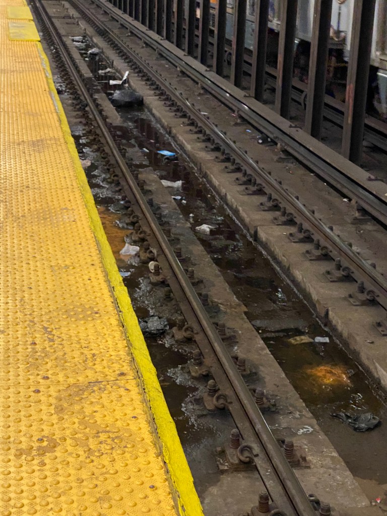 As part of its project to repair line structure components, the MTA works on “the repair of priority steel and concrete defects and leaks” between 8th Ave and 1st Ave in Manhattan. This will lead to stations appearing in better condition and will reduce the risk of train delays due to structural damage on the line. On my visit to the 3rd Av(L) station on Thursday, April 20th, 2023, I noticed grimy tracks with a substantial amount of water in them. I also noticed what appeared to be eroding steel in numerous areas of both the tracks and steel beams supporting the station structure. Based on the MTA’s description of the project on its capital program dashboard, it appears that issues like these throughout the line in Manhattan will be addressed. The dashboard also states that this project will be completed in March 2025 and is currently 9% complete. It is important to note that the dashboard is only updated quarterly, so for any MTA capital project, it is possible that more progress has been made than the dashboard specifies.
