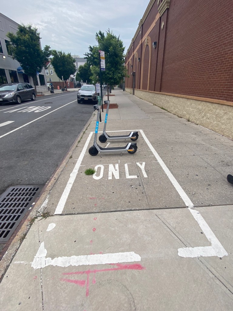 Another challenge in The Bronx that will likely be prevalent in Queens is how people park e-scooters. In The Bronx, riders were required to park in designated corrals like the one seen below if they were in certain zones designated by the NYCDOT based on high pedestrian volumes, limited sidewalk width, and community input. Otherwise, they were required to park in what was known as the “furniture zone,” or free-floating parking zone, which is the section of the sidewalk between the curb and where pedestrians walk that is typically used for installing street furniture, such as benches and bike racks. 30% of riders reported to the NYCDOT that they either found the parking regulations confusing or had difficulty finding parking spaces. Even though this information is communicated to riders during in-app training and community events hosted by companies, more may be done to ensure the knowledge and enforcement of the parking regulations. However, the NYCDOT did indicate in their report on the East Bronx pilot that compliance with parking regulations improved over time; thus, this might also become the case in Queens as well.