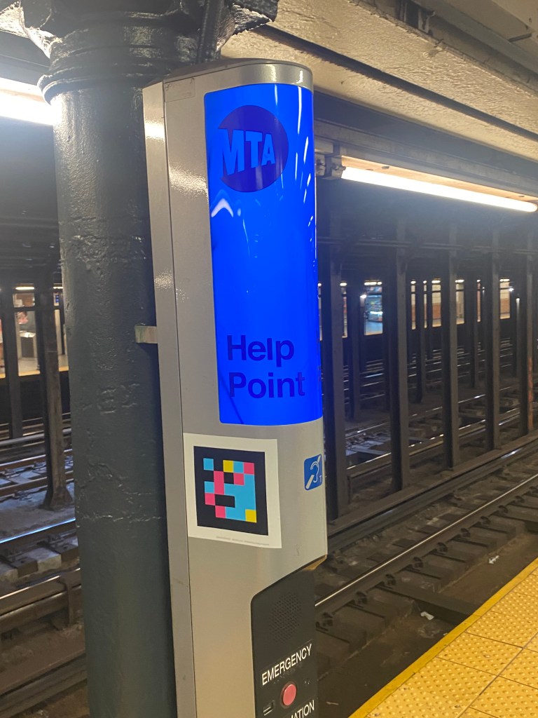 At bus stops, NaviLens codes are placed on both the stop name section as well as the schedule box. As for subway stations, codes are placed in numerous spots at the station’s entrance so that riders who are low vision or blind can scan the codes and receive auditory instructions to enter the station. All codes are colorful and can be picked up by the app up to 40 feet away(12x further than QR and barcodes) and at an angle of up to 160 degrees, making it easier for individuals to detect station entrances and bus stops as GPS technologies often do not guide the visually impaired to the precise location of a destination, known commonly as “the last few-yards problem.” In addition, the codes are placed throughout the subway station so that people can detect certain key locations and amenities, such as the turnstiles, the platform, and help points. For both bus stops and subway stations, codes can be used to tell individuals the amount of time until the next bus/train arrives. In addition to the NaviLens app itself, the codes can also be used for the NaviLens GO app, which helps sighted users to determine bus stop/subway station information and bus/train arrival times from up close rather than by reading signage. The MTA also added maps of the 1 line to both the Uptown and Downtown mezzanines that included Braille so that those who are blind or low-vision can navigate not just the station but the subway system as a whole. The app can be utilized on public transit systems in both Barcelona and Murcia in Spain as well as in schools.