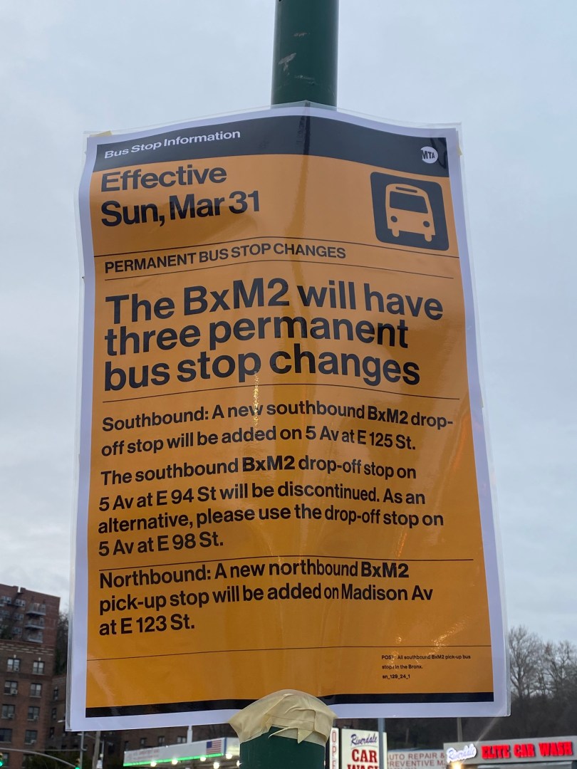 Despite this, the MTA has made some small but considerable express bus improvements for Bronx Express Buses within the last few months. On several routes, the MTA has added a new stop at 96th St in both directions for riders on the BxM10. This provides riders with new connections to parts of the Upper East Side as the next closest stop was at 5 Av/E 85th St. Additionally, the MTA added a new stop at 125th St on the BxM2, which did not have a stop in Harlem, providing new connections there as well. For reverse commuters, the MTA added a stop at Morris Park Ave/1300 Morris Park Ave on the BxM10 to better serve commuters headed to the Albert Einstein College of Medicine.