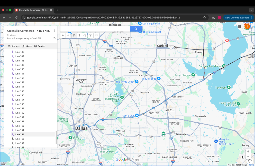 The Brown Line will connect Downtown Greenville to the Downtown Garland DART Blue Line Station to provide access to the DFW region’s northeast suburbs. This is likely one of the other regions that a higher number of residents commute to. Unlike the existing route to nearby Rowlett, Garland offers connections to a slew of DART bus routes that traverse much of the northeast suburbs along with Northern Dallas. It is also worth noting that since Rowlett is one light rail stop east of Garland and the Blue Line runs every 15 minutes during rush hours, the route adjustment should not have a significant adverse impact on those transferring to the light rail. In addition, there will be stops in Rowlett along Hwy 66 at Scenic Dr, Dalrock Rd and Rowlett Rd for those still travelling to Rowlett.